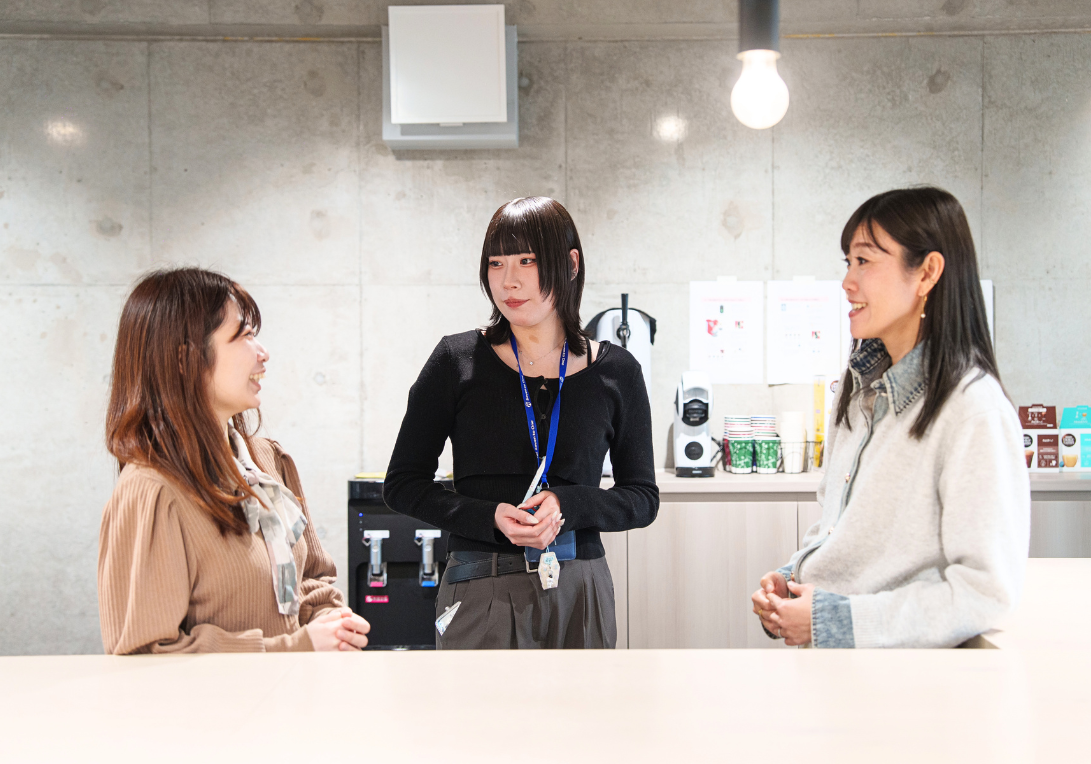 我々はそれぞれ個人の働き方を尊重し、「組織と個」が一緒になって目標を実現していこうという強い信念と環境・体制がある会社です。入社時には勤務形態を相談し、自分らしい働き方、週休3日制度や時短勤務がデザインできたり、全ての従業員がハイブリット勤務(在宅、出社の併用)で勤務を行っています。